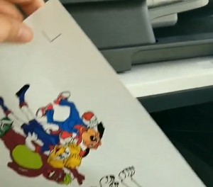 Laser-Dark transfer paper (TWL-300R) can be printed by color laser printers, or color laser copy printers with flat feed and flat output, such as OKI C941dn, Konica Minolta C221, Fuji film Revoria Press SC285,
