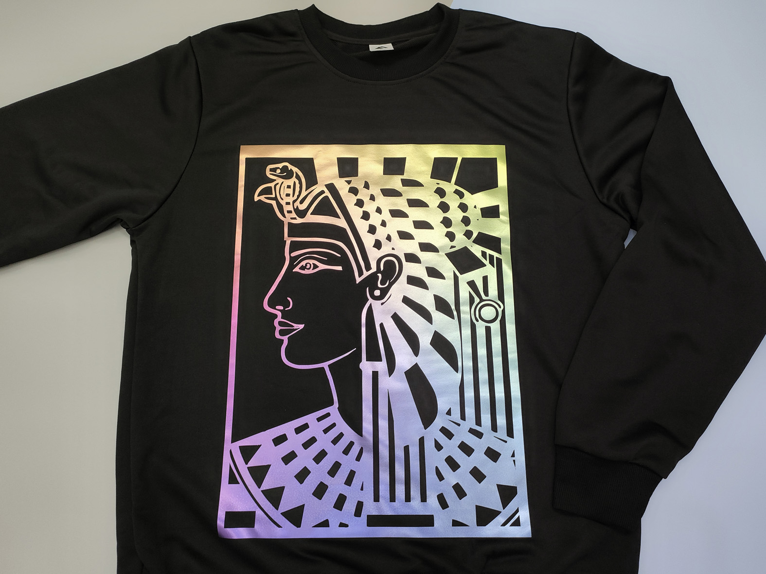 Eco-Solvent Metallic Printable PU Flex can be printed by all kinds of Eco-Solvent inkjet printers, get great durability with image retaining color, wash-after-wash. Decorate fabric with photos in minutes. Innovative hot melt adhesive is suitable to transfer onto textiles like cotton, mixtures of polyester/cotton and polyester/acrylic, Nylon/Spandex etc. by heat press machine. It is ideal for customizing dark, or light colored T-shirts, canvas bags, sport & leisure wear, uniforms, biking wear, promotional articles and more. with the metallic back of Printable PU Flex,after printing & transferring, the color will be changed with the metallic effect.