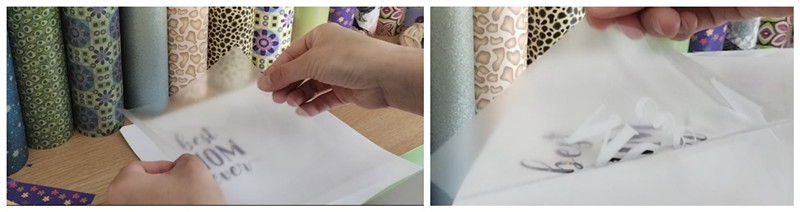 ଗ୍ଲାଇଟର ରୂପା ପ୍ରିଣ୍ଟେବଲ୍ ଫ୍ଲେକ୍ସ କେଉଁଠାରେ ଅଛି?ହଁ, ମୁଁ ଶବ୍ଦଗୁଡ଼ିକୁ ଧଳା କପଡା ଉପରେ ସ୍ଥାନାନ୍ତର କରିବାକୁ ଯାଉଥିଲି, କିନ୍ତୁ ଏହା ଦୁର୍ବଳ ଦେଖାଯିବ, ତେଣୁ ମୁଁ ମୋର ମତ ପରିବର୍ତ୍ତନ କରେ |ମୁଁ ପ୍ରଥମେ ଚମତ୍କାରୀ ରୂପା ପୂର୍ଣ୍ଣ ରଙ୍ଗକୁ 165 ℃ ଏବଂ 25 ସେକେଣ୍ଡ୍ ସହିତ ଧଳା କପଡ଼ାର ପୁରା ଛୋଟ ଖଣ୍ଡ ଉପରେ ସ୍ଥାନାନ୍ତର କରେ |ପରବର୍ତ୍ତୀ ସମୟରେ, ମୁଁ ଚମକଦାର ଫ୍ଲେକ୍ସ ଉପରେ “ସର୍ବଶ୍ରେଷ୍ଠ MOM” ଶବ୍ଦଗୁଡ଼ିକୁ ସ୍ତର କରେ |ଡିଜାଇନ୍କୁ ଏକ ଗ୍ରୀସ୍ ପ୍ରୁଫ୍ କାଗଜ ଏବଂ ଏକ ଧଳା କପଡା ସିଟ୍, ସମାନ ତାପମାତ୍ରା ଏବଂ ସମୟ, 165 ℃ ଏବଂ 25 ସେକେଣ୍ଡରେ ଘୋଡାନ୍ତୁ |ଗରମ ପ୍ରେସ୍ ପରେ, ବାହକକୁ ଗରମ ହୋଇଗଲେ ତୁରନ୍ତ ଛାଣି ଦିଅନ୍ତୁ |