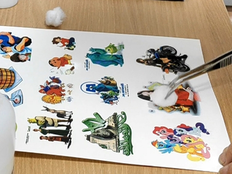 Soak a sanitary napkin in the Pre-Coat FJ5 pretreatment liquid and gently wipe the laser-printed coating surface. Let it dry naturally for about 5 minutes.