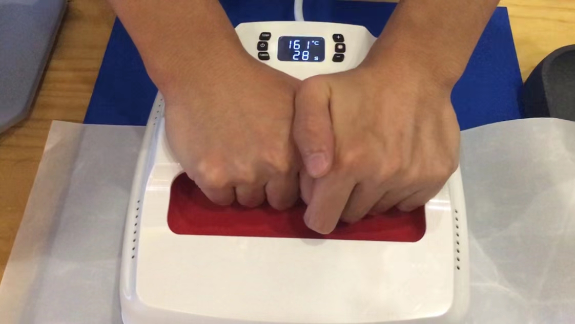 HTV غا ئوخشاش ، ئىسسىقلىق بېسىش ماشىنىسى ئارقىلىق ئەڭ ياخشى نەتىجىگە ئېرىشىسىز.بەلگە يۆتكەش قەغىزىدىكى ئەلىزارىن تۆمۈر ئۈچۈن بېسىم ئوخشاشلا مۇھىم.ئىسسىقلىق بېسىش ماشىنىسىنىڭ تەڭشىگىلى بولىدىغان بېسىم تۈگمىسى بار ، تەكشى قىزىتىلغان تاختاي ئارقىلىق قاتتىق بېسىمغا ئېرىشەلەيسىز ، باسقاندىن كېيىن رەڭلەرنىڭ بىردەك بولۇشىغا كاپالەتلىك قىلىڭ.ئەگەر قېپى ئوچۇق ئىسسىقلىق بېسىش ماشىنىسىنى ئىشلىتىۋاتقان بولسىڭىز ، ئىسسىقلىق بېسىش ئارقىلىق قوللايدىغان جەدۋەلنىڭ بار-يوقلۇقىنى جەزملەشتۈرۈڭ.ئادەتتە ئەگەر كۆپۈك يوتقان بولمىسا ، بىزمۇ ئەڭ چوڭ بېسىمنى تۈگەتتۇق ، ئەمما نەتىجە يەنىلا سىزنى ئۈمىدسىزلەندۈرىدۇ.